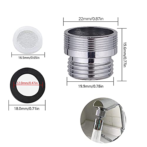 ZHIQIN 5 Pezzi Adattatore per Rubinetto in Metallo da 20mm Maschio a 22mm Maschio in Ottone Solido Connettore per Rubinetto Aeratore con 5 Guarnizioni O-ring in Gomma