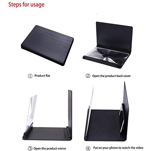 ZHIRCEKE Lente di ingrandimento della Holding Lente d'Ingrandimento for Schermo in Acrilico da 10 ", Lente d'Ingrandimento for Schermo Pieghevole for Smartphone 3D Schermo Zoom Telefono,Nero