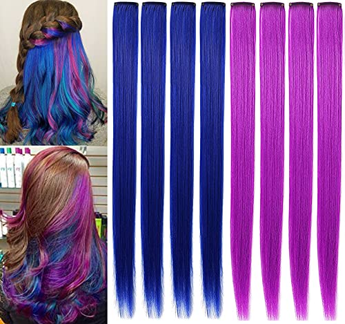 ZHIRXIN 8 Pezzi Parrucca Blu e Viola Parti, Clip In/On Colorate Estensioni Dei Capelli Parti In Evidenza Parti Sintetiche Dei Capelli