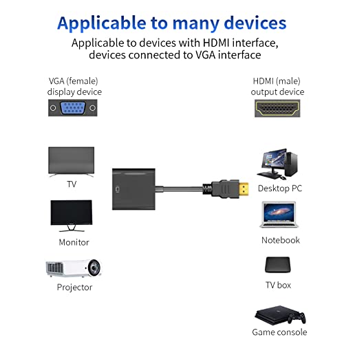 【Convertitore da HDMI a VGA】 L'adattatore portatile da HDMI a VGA dal design compatto con chip di conversione di terza generazione ad alte prestazioni consente di collegare un computer, desktop, laptop o altro dispositivo con una porta HDMI a un monitor, proiettore, HDTV o altro dispositivo per collegare il connettore VGA ad altri dispositivi.【Suggerimenti! Al momento dell'acquisto, assicurati che il tuo dispositivo supporti questa interfaccia】