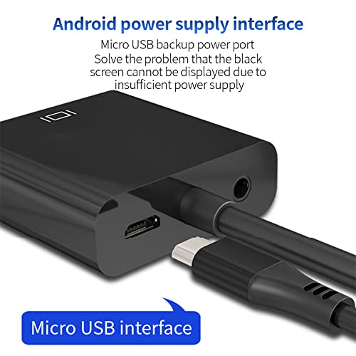 【Plug and Play】 Funzionamento semplice, plug and play. Conversione conveniente, potente chip di conversione digitale, super schermatura. Piccola interfaccia di alimentazione Android, facile da trasportare Porta di alimentazione di backup Micro USB Risolvi il problema dell'impossibilità di visualizzare lo schermo nero a causa della potenza insufficiente Uscita audio indipendente L'interfaccia audio da 3,5 mm consente di accedere liberamente all'audio e ad altri dispositivi.