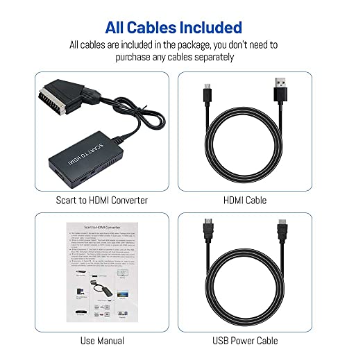【Acquisto senza preoccupazioni】 Riceverai: 1x convertitore da Scart a HDMI, 1x cavo HDMI, 1x cavo di alimentazione USB, 1x manuale utente e 12 mesi di garanzia e un servizio clienti amichevole per rendere il tuo acquisto senza preoccupazioni.