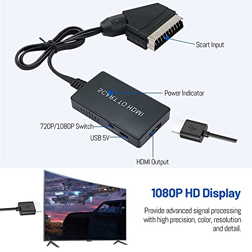 ZHITING Cavo Adattatore Scart HDMI,Convertitore da Scart a HDMI Connettori Video Audio Supporta Switch di Uscita Full HD 720P/1080P per monitor HDTV/Projektor STB/VHS/PS3/Lettore DVD