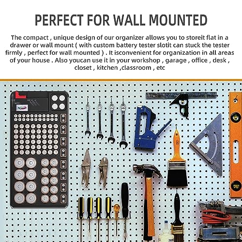 【Multifunzione】 Conservazione in un cassetto o sulla parete, il design compatto e unico del nostro organizzatore consente di riporlo in piano in un cassetto o in un supporto a parete (con uno slot personalizzato per il tester della batteria, può tenere il tester in posizione, perfetto per il montaggio a parete).