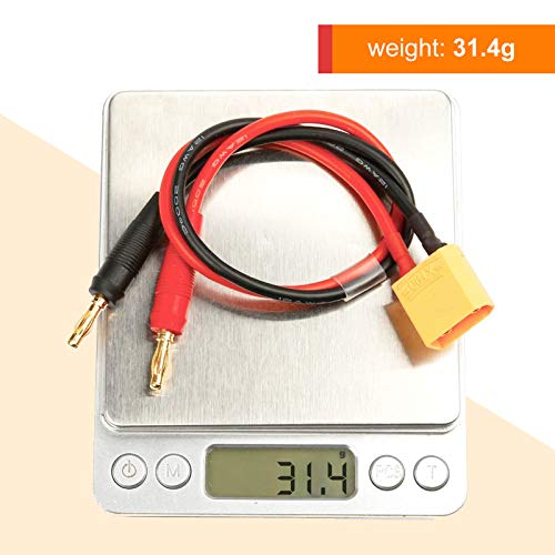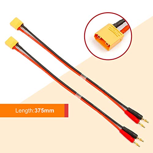 Connettore di ingresso: spina maschio a banana da 4,0 mm, connettore di uscita: connettore maschio XT90, diametro del filo: cavo in silicone 14AWG, lunghezza: 37,5 cm