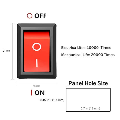 ZHITING 12 Pezzi SPST Snap-in ON-off Interruttore a bilanciere a Scatto a 2 Pin Nero AC 250 V 6 A 125 V 10 A per elettrodomestici Auto Barca Elettrodomestici (Pulsante Rosso)