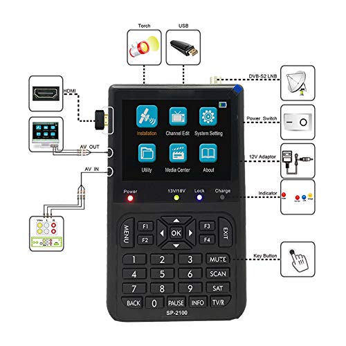 ZHITING SP-2100 HD Satfinder Dispositivo di Misurazione, DVB-S / S2 e MPEG-2/4 Satellite Finder con Schermo LCD da 3,5 Pollici per Allineamento Satellitare di Antenna, Auto, Blind, Manuale e NIT Scan