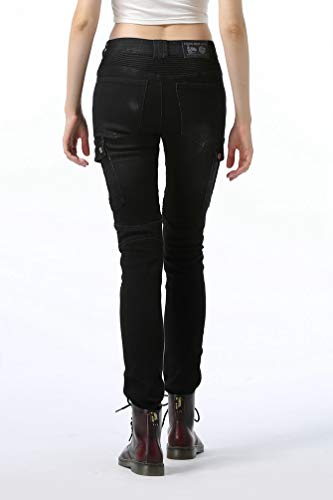 Zhiyuanan Donna Pantaloni da Moto Jeans Stretch Multitasche Protettivi Denim Moto Pantaloni Anticaduta Biker Motociclista Pantalone con 2 Protezioni Ginocchia e 2 Protettori Anca Nero 30W / 41L