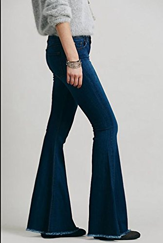 Zhiyuanan Donna Jean Pantaloni A Zampa di Elefante O Jeans Palazzo Larghi Elasticizzati Comodo Denim Pantaloni Gamba Larga Casual Baggy Jeans Blu Marino XL
