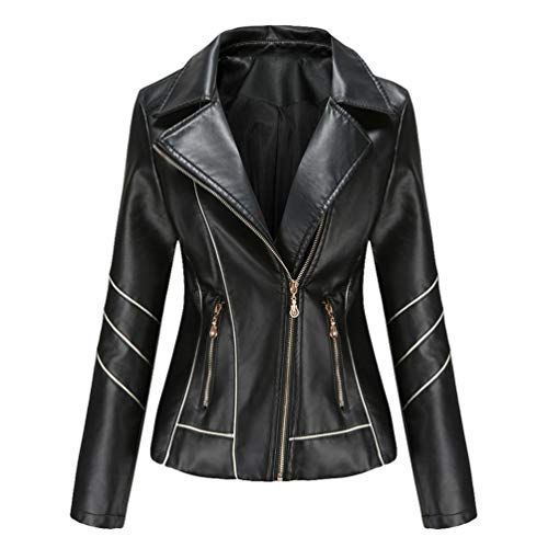 Zhiyuanan Giacca Ecopelle Donna PU Slim Fit Sottile Collo Bavero Primavera Autunno Manica Lunga Elegante Giubbino Corto Giubbotti Biker con Cerniera Nero 4XL