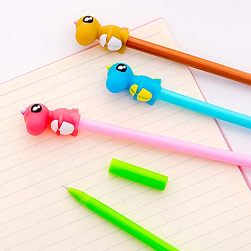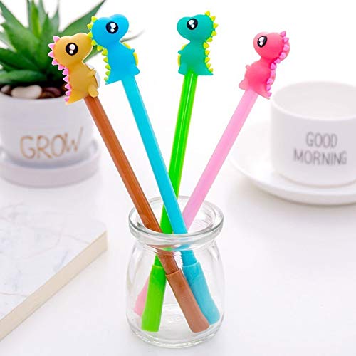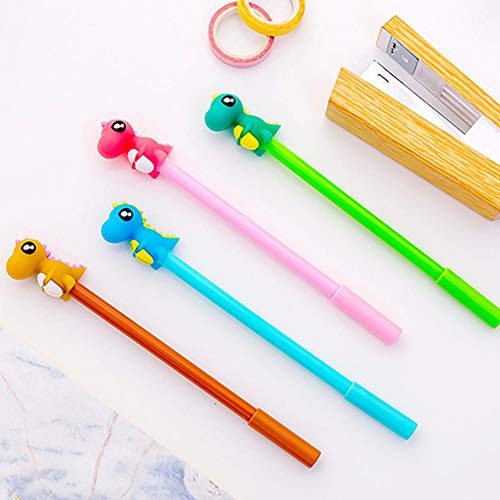 Zhouba - Penna in gel nero con dinosauro da 0,38 mm, per studenti e studenti, articoli per la scuola, 4 pezzi