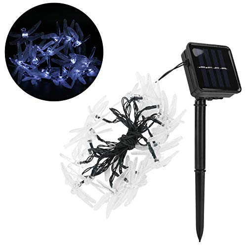 Zhoul 20PCS LED String Lights Dragonfly PVC Outdoor Fairy Light Solar Powered Holiday Part Decoration (Bianco/Giallo Caldo)(Bianca)