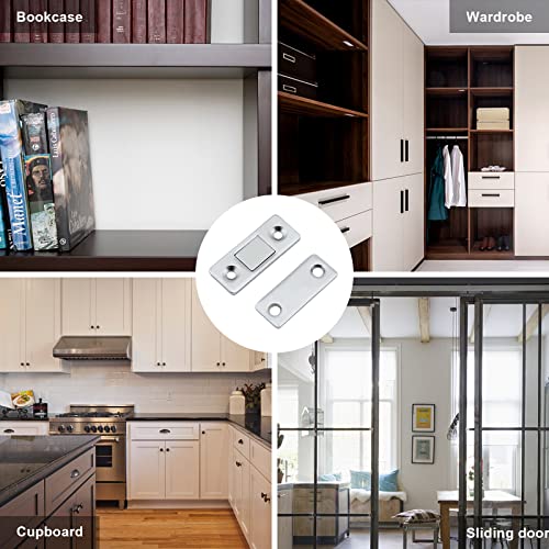 【Design ultrasottile】 Il fermo magnetico in acciaio inossidabile ha uno spessore di soli 4 mm, quindi lo spazio è abbastanza stretto da chiudere correttamente la porta. Adatto per ante di armadi da cucina, armadietti, ante di armadietti, cassetti, ecc. Si applica anche a porte scorrevoli su balconi, finestre e altro.