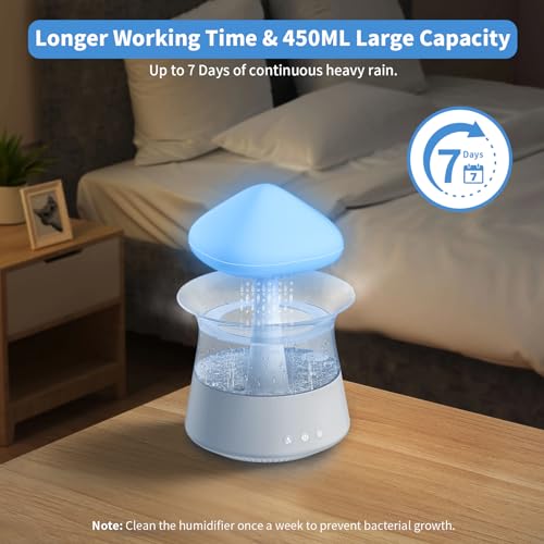 ZHOUZMIN Umidificatore, 450ml Top Fill Umidificatore Ambiente diffusore olio essenziale con Luce notturna 7 colori, timer 8 ore e Suono Goccia Pioggia per Casa, Ufficio, Camera. Incluso Telecomando
