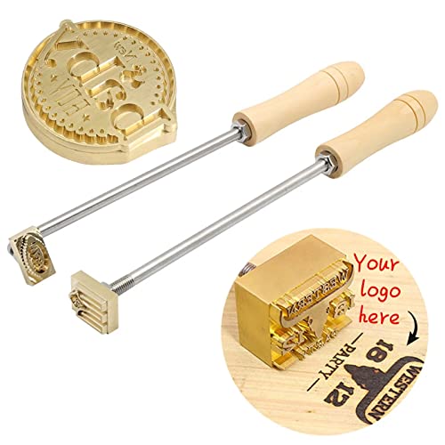 Zhuchao Ferro da Stiro Personalizzato per Legno, Pelle, Torte - Timbro a Caldo con Logo Personalizzato con Testa in Ottone e Manico in Legno per Pelle, Lavorazione del Legno, Barbecue, Cottura