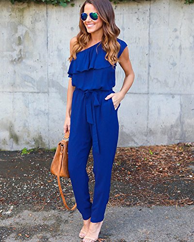 ZhuiKun Donna Jumpsuit Pantaloni Lunghi V Scollo Playsuit Tuti Eleganti Vestiti Senza Spalline Blu XL