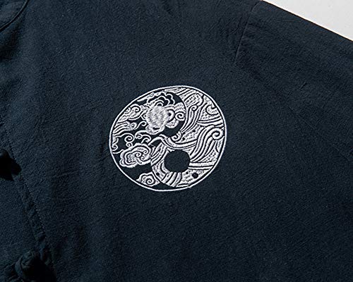 ZhuiKunA Uomo Estate Kimono Giapponese Sottile Cloak Open Front Kimono Jacket Gioventù Casual Loose Cappotto Corto Blu Navy 3XL