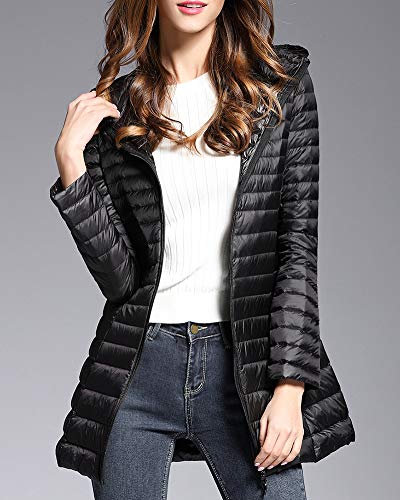 ZhuiKunA Lunga Giacca Piumino Donna Ultraleggeri Cappotto Trapuntato Packable Giacca con Cappuccio Nero XL