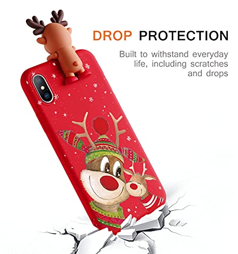 ZhuoFan Bambola di Natale Custodia per iPhone 13 Cover, Rosso Silicone TPU Morbido Cover con Doll Cervo di Natale Disegno Anti-Graffio Antiurto Bumper Case per iPhone 13, 6.1"