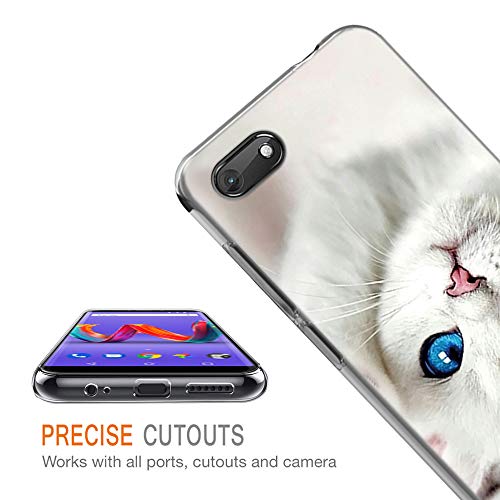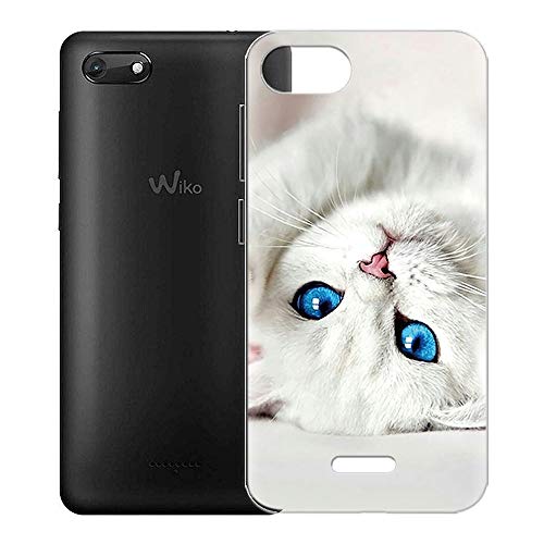 ZhuoFan Cover Wiko Harry 2, Custodia Cover Silicone Trasparente con Disegni Ultra Slim TPU Morbido Antiurto 3D Cartoon Bumper Case Protettiva per Wiko Harry 2 (Gatto - Occhi Blu)