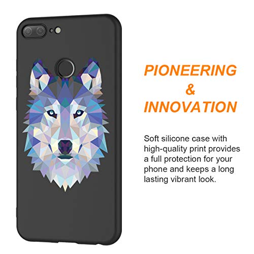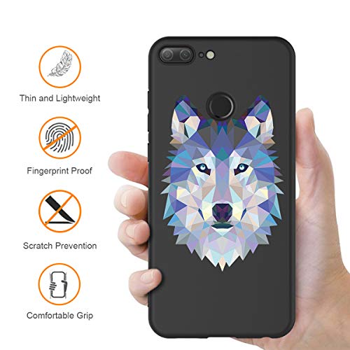 Zhuofan Plus Cover Honor 9 Lite, Custodia Silicone Nero Soft Tpu Gel con Design Print Pattern Antigraffio Antiurto Protactive Cover per Honor 9 Lite, Lupo