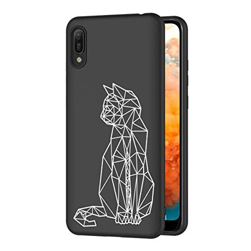 Zhuofan Plus Cover Huawei Y6 PRO 2019, Custodia Silicone Nero Soft TPU Gel con Design Print Pattern AntiGraffio Antiurto Protactive Cover per Huawei Y6 PRO 2019, Gatto