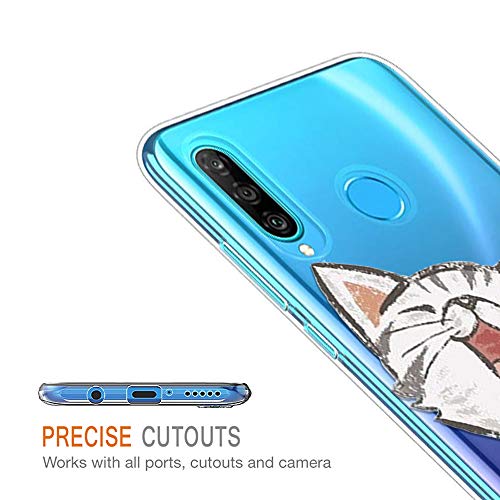 ZhuoFan Cover Huawei P30 Lite / P30 Lite New Edition, Custodia Cover Silicone Trasparente con Disegni Ultra Slim TPU Morbido Antiurto 3D Cartoon Bumper Case Protettiva (Gatto Sorridente)