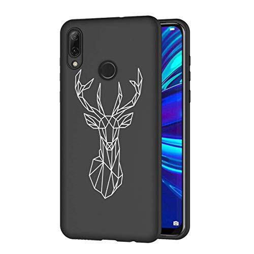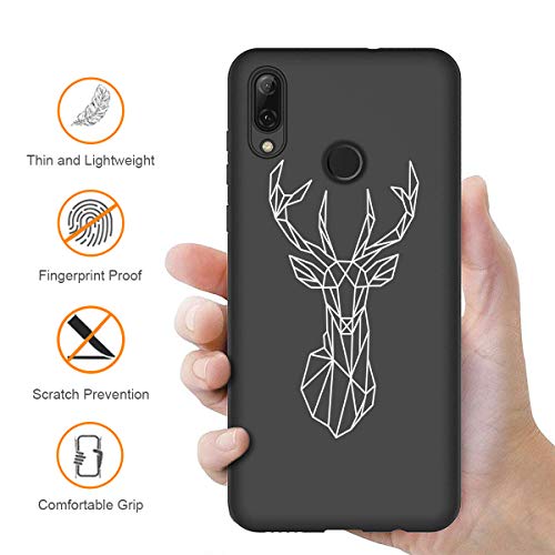 Zhuofan Plus Cover Huawei P Smart 2019, Custodia Silicone Nero Soft TPU Gel con Design Print Pattern AntiGraffio Antiurto Protactive Cover per Huawei P Smart 2019, Cervo