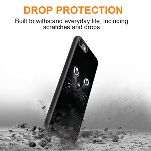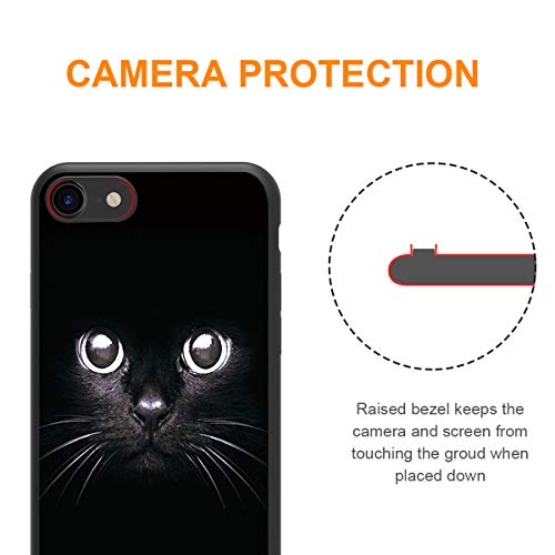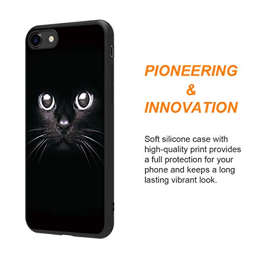 ZhuoFan Cover per iPhone 8/iPhone 7/iPhone SE 2022/2020, Custodia Cover Silicone Nero con Disegni Ultra Slim TPU Morbido Antiurto 3D Cartoon Bumper Case Protettiva Smartphone (Gatto Nero)