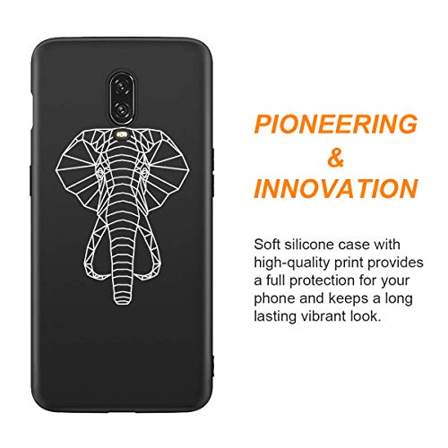 Zhuofan Plus Cover OnePlus 6T, Custodia Silicone Nero Soft Tpu Gel con Design Print Pattern Antigraffio Antiurto Protactive Cover per OnePlus 6T, Elefante