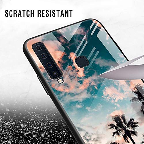 ZhuoFan Cover per Samsung Galaxy A9 2018, Custodia Antiurto con Disegni in Vetro Temperato 9H [AntiGraffio] + Cornice Paraurti in Silicone Morbido per Samsung Galaxy A9 2018 (Albero di Cocco)