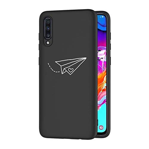 Zhuofan Plus Cover Samsung Galaxy A70, Custodia Silicone Nero Soft Tpu Gel con Design Print Pattern Antigraffio Antiurto Protactive Cover per Samsung Galaxy A70, Aereo di Carta