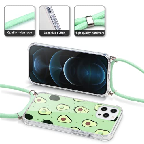 ZhuoFan Custodia con Cordino per Motorola Moto G30 (4G)/G10/G20 Cover Trasparente Disegno con Collana Morbido con laccio in Silicone TPU + Rigido PC Antigraffio Case per Cellulare Girocollo, Avocado