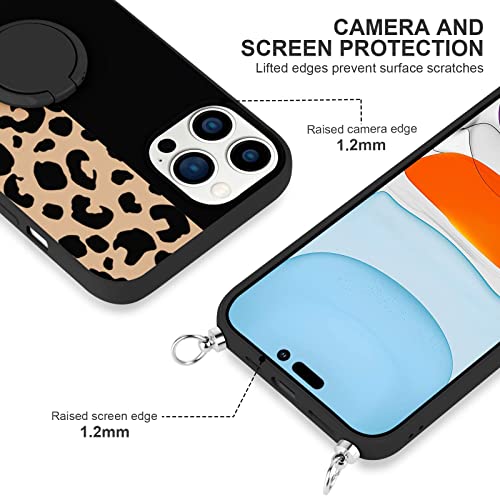 ZhuoFan Custodia per Samsung Galaxy A33 5G 6,4'' con Cordino, Holder Stand Support Sostegno Chiusura Anello Silicone Cellulare Protezione Antiurto Cute ragazza Chain Cover,Leopardato