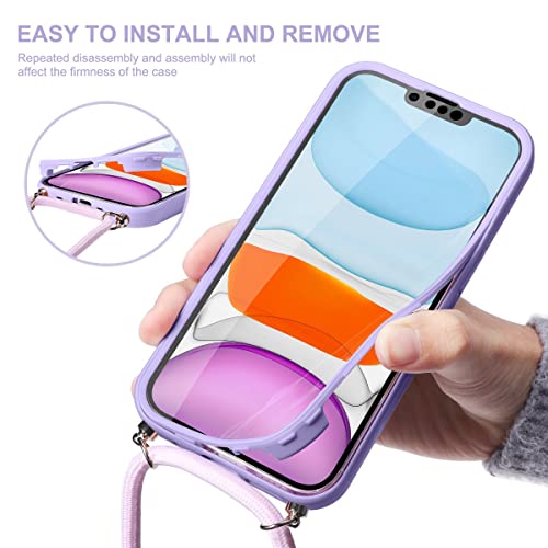 ZhuoFan Custodia per Samsung Galaxy A32 4G 6,4'' 360 Gradi con Cordino, Viola Case con Protezione per Lo Schermo Integrata Full Body Cordoncino Antiurto Bumper TPU Cute Ragazza Cover, Farfalla