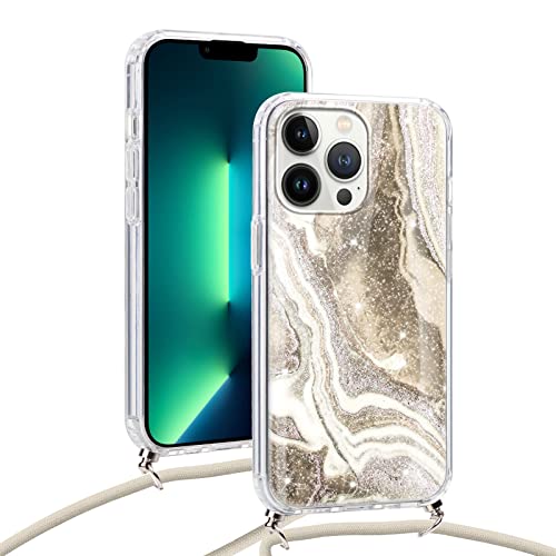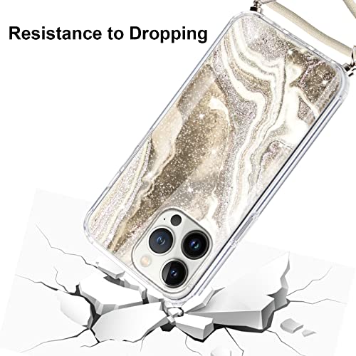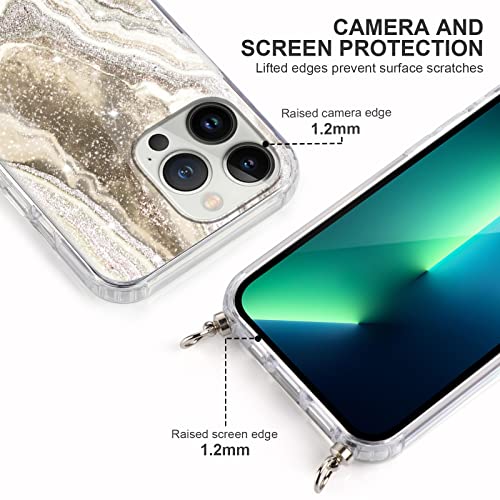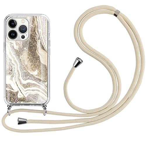 ZhuoFan Glitter Custodia per iPhone 14 Pro Max 6,7" con Cordino, Brillantini Trasparente Cover con Corda Regolabile Cellulare Tracolla Collana Antiurto TPU Glitterata Protettivo Case, Marmo 04