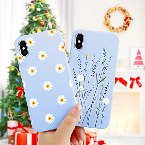 ZhuoFan 2 Pezzi Cover Per Apple iPhone X/iPhone XS 5,8", Custodia Margherita Fiore Blu Silicone Ultra Slim TPU con Disegni Pattern Antiurto Bumper Phone Case Protettiva per iPhone XS/X