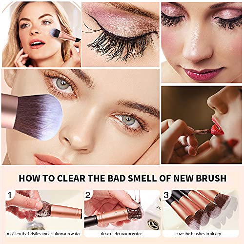 Zhurson 14 pennelli da trucco, set di pennelli da trucco in oro rosa, pennelli per viso e occhi, adatti per fondotinta, polvere e ombretto.