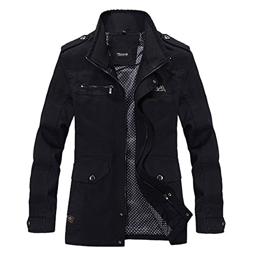 Zicac, Parka da uomo per primavera e autunno, stile militare, aderente, in cotone, leggera, con cerniera, giacca per esterno Black Small