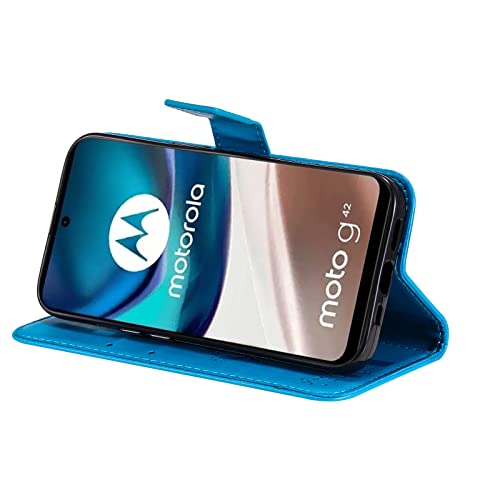 Zicgxin per Cover Moto G42, Custodia Cover Protettiva in Cuoio Flip Libro Portafoglio Resistente Antiurto con Supporto per Motorola Moto G42 (Gatto-Blu)