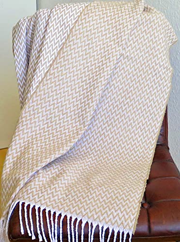 Zickzack - Plaid in cotone con frange, 140 x 200 cm, coperta in cotone, coperta da divano, colore: ecru bianco