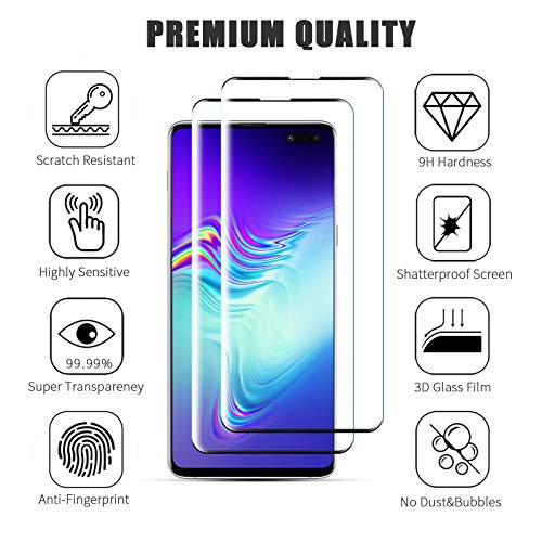 ✮【SUPER CHIARO】Vetro temperato copertura completa, con spessore di 0,3 mm assicura che fino al 99,99% HD chiarezza e precisione tattile tocco tattile, rivestimento oleofobico idrofobico schermo impedisce il sudore e le impronte digitali di rimanere sullo schermo e mantiene la Samsung Galaxy S10 5G altamente sensibile risposta al tocco.