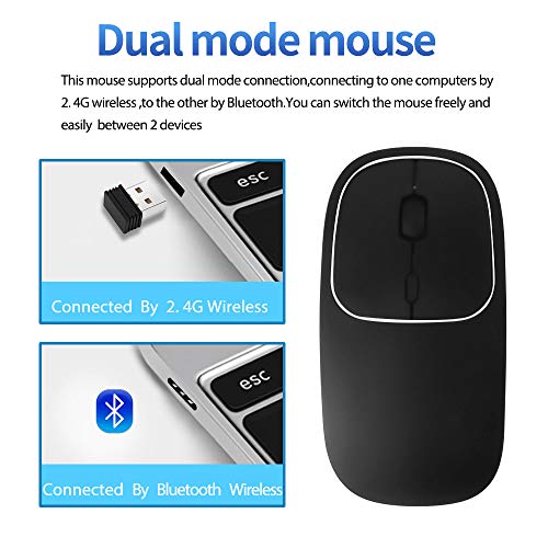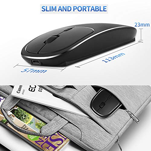 Zienstar-Mouse Wireless Bluetooth Ricaricabile,Topi Cordless BT4.0 e 2.4G Modello Doppio,Clic Silenzioso,Guscio Superiore in Lega di Alluminio per MacBook,Laptop e PC (Nero)