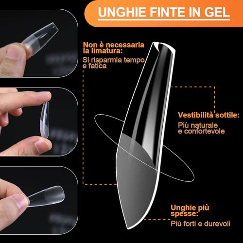 ZIFUTON 384 Pezzi Unghie Finte Trasparenti, Kit Unghie Finte Tip Unghie Ricostruzione Mandorla e Ballerina, Tip in Gel per Unghie, per Ricostruzioni Mani,Saloni di Manicure Professionale,Nail Art