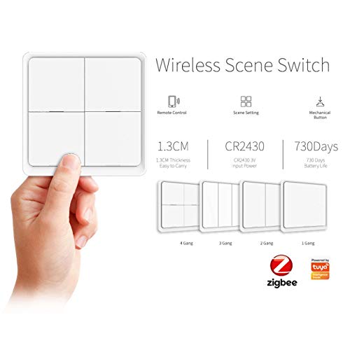 Zigbee Scene Switch con 4 Gang Switch, Wireless Panel Switch con 12 Scene Mode, Dimmer Switch Wall Switch con telecomando, Smart Light Switch Funziona con Zigbee Gateway, nessun hub richiesto