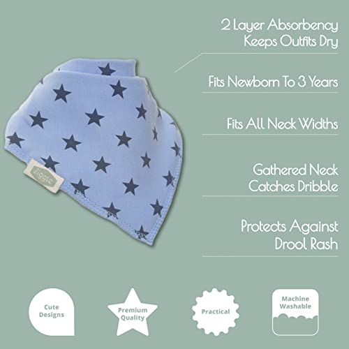 Ziggle bambino bandana dribble bavaglini, assorbente eccellente, adatto appena nato al bambino, premiato, 4 pack (dino & stars bavaglini per abbinare i calzini)
