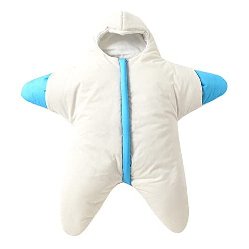 ZIGJOY Starfish Fasciato Sacco a Pelo per Bambini Sacco a Pelo in Puro Cotone Neonato può Aprire la Coperta Indossabile Manica 0-6 Mesi Bambino(bianco blu)