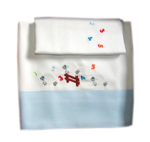 Zigozago - Set Lenzuola ricamate in raffinato piquet di cotone fatte a mano Pecorelle;
