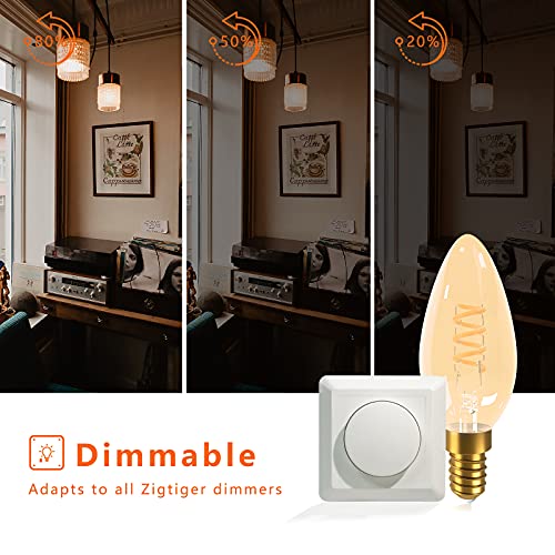 Zigtiger Edison, lampadina vintage dimmerabile a LED, luce bianca calda, E14, 3 W, stile vintage, antico, ideale per illuminazione nostalgica e retro in casa, bar, classe energetica A+, 6 pezzi