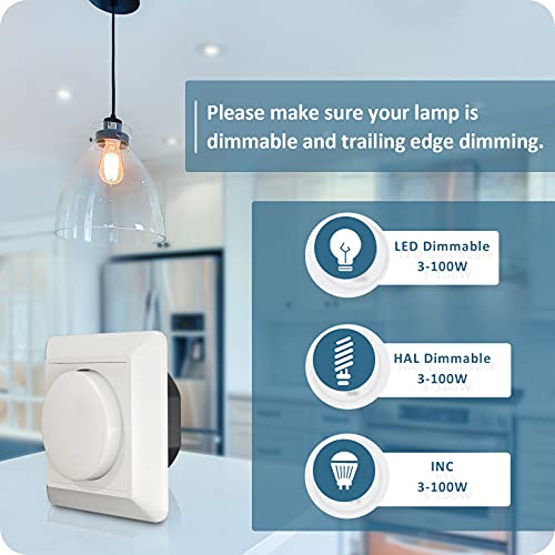 Zigtiger Interruttore dimmer a LED, dimmerabile, da incasso, adatto per LED dimmerabili e alogeni da 3 a 100 W, senza morsetto, sezione fase, garanzia 3 anni, bianco